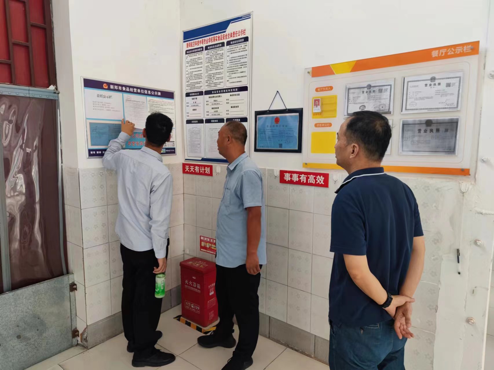 6月5日和6日,新郑市辛店镇市场监督管理所杨所长一行到学校餐厅检查指导工作,确保餐厅供餐干净卫生,让考生吃的放心,吃的舒心。