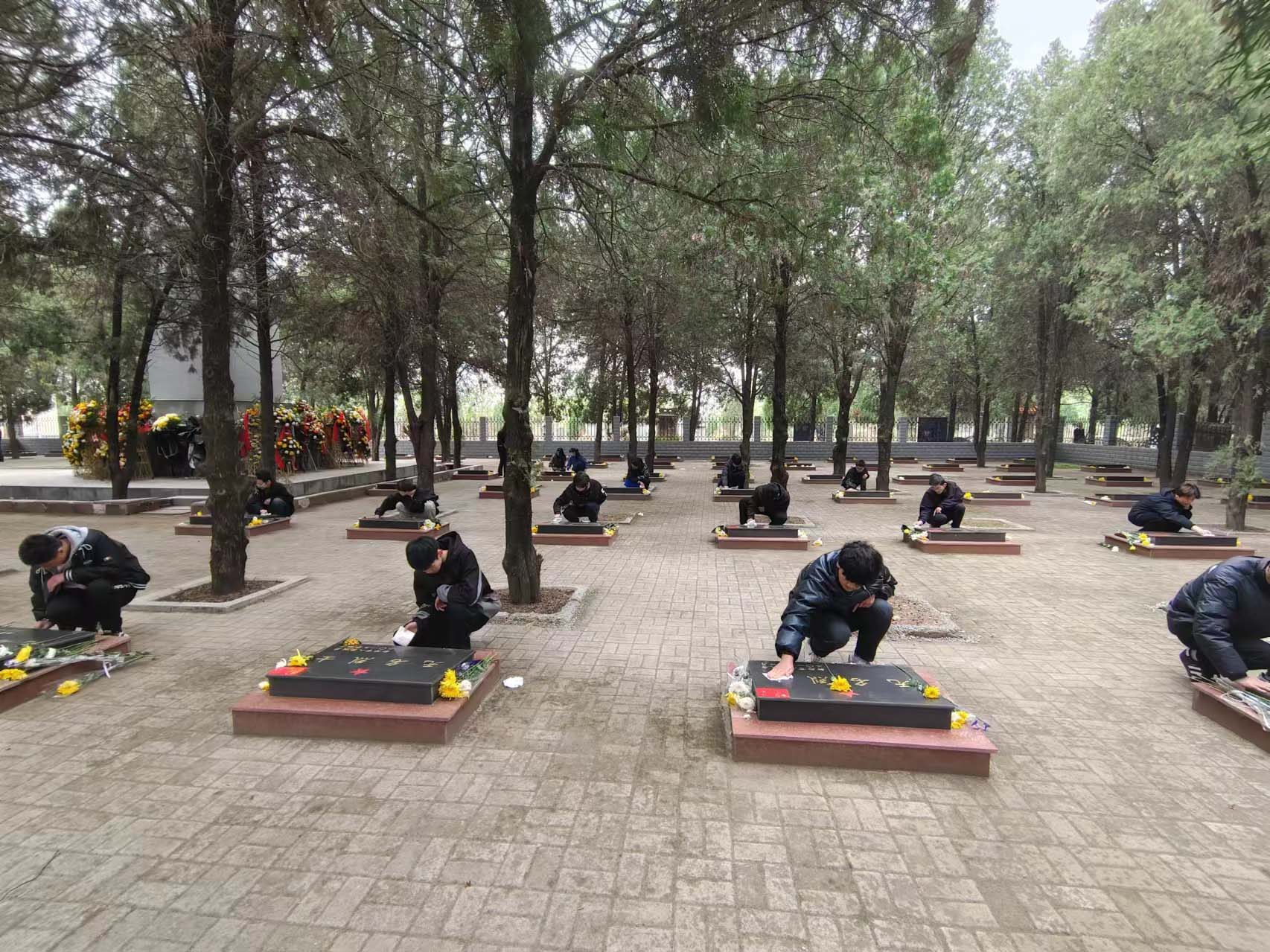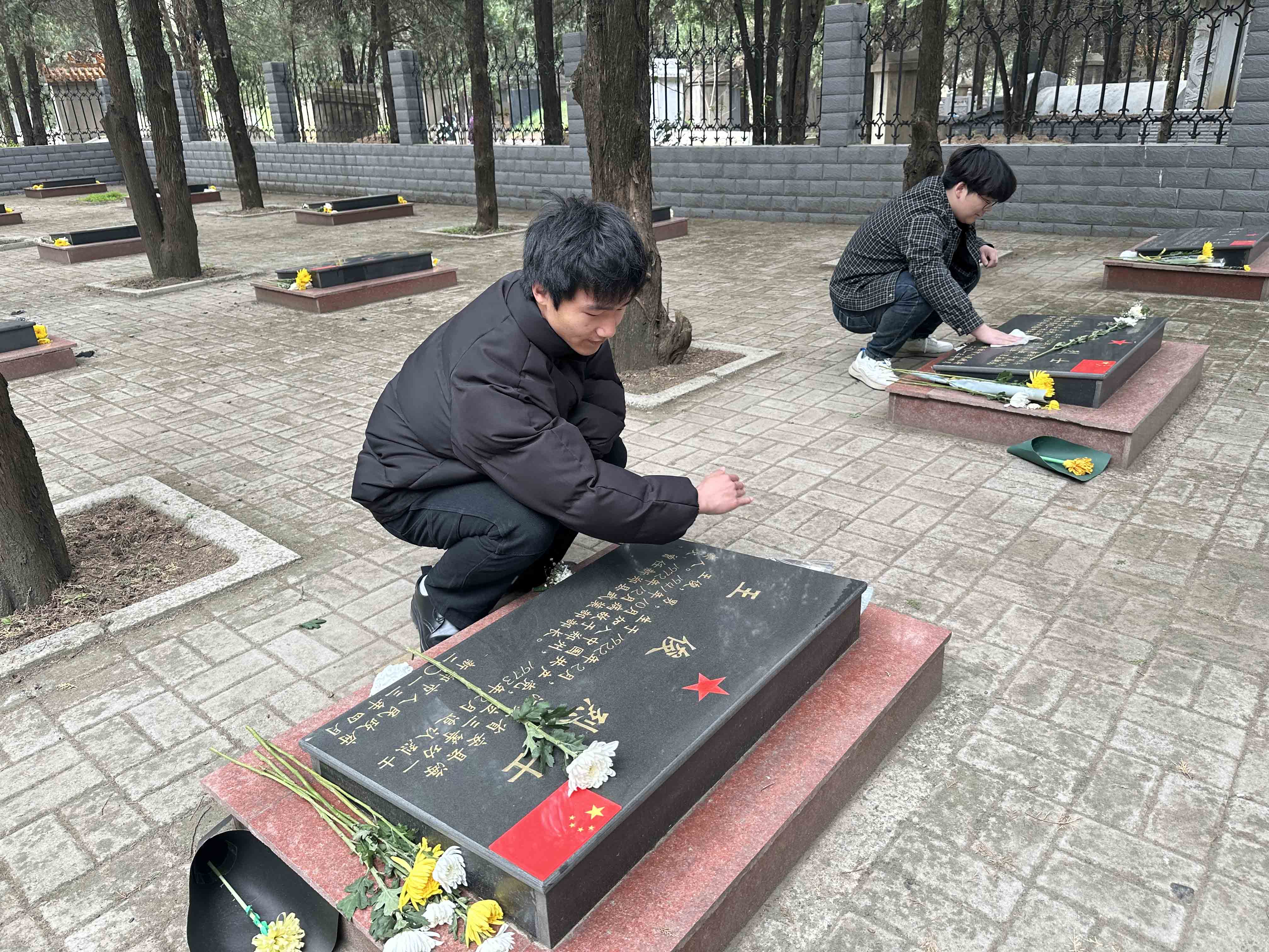 最后,师生们依次到先烈墓碑前擦拭先烈墓碑,以表追思,缅怀先烈不朽精神。